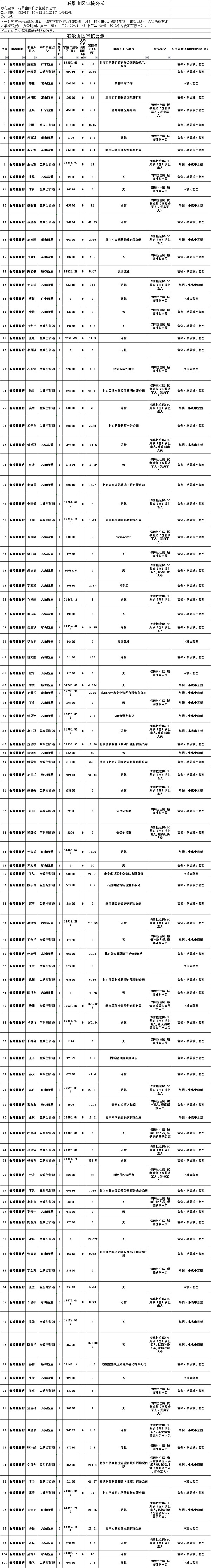 附:石景山区2020年第八批申请保障性住房家庭情况公示清单