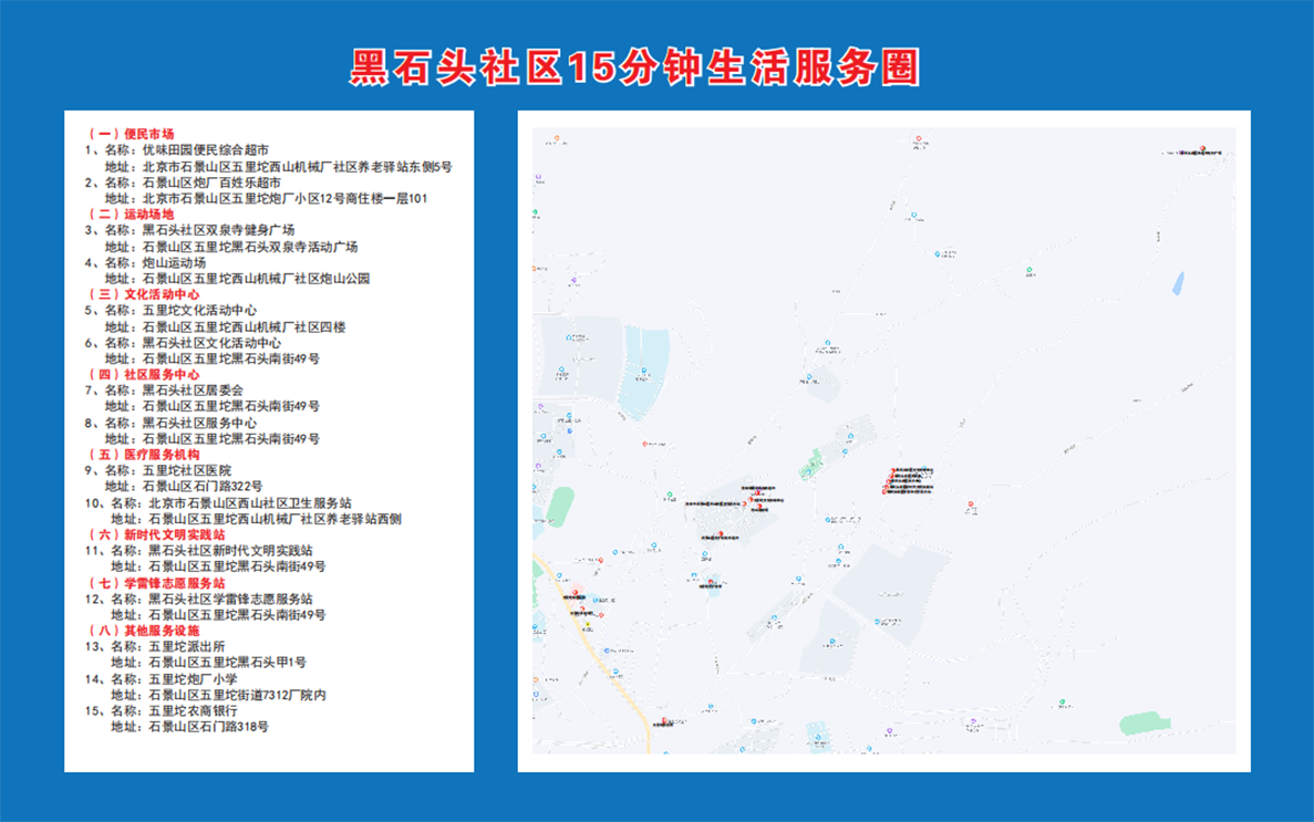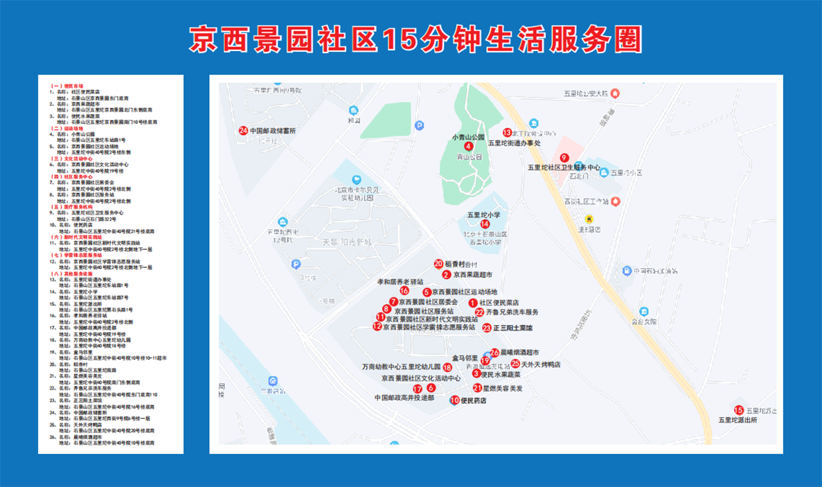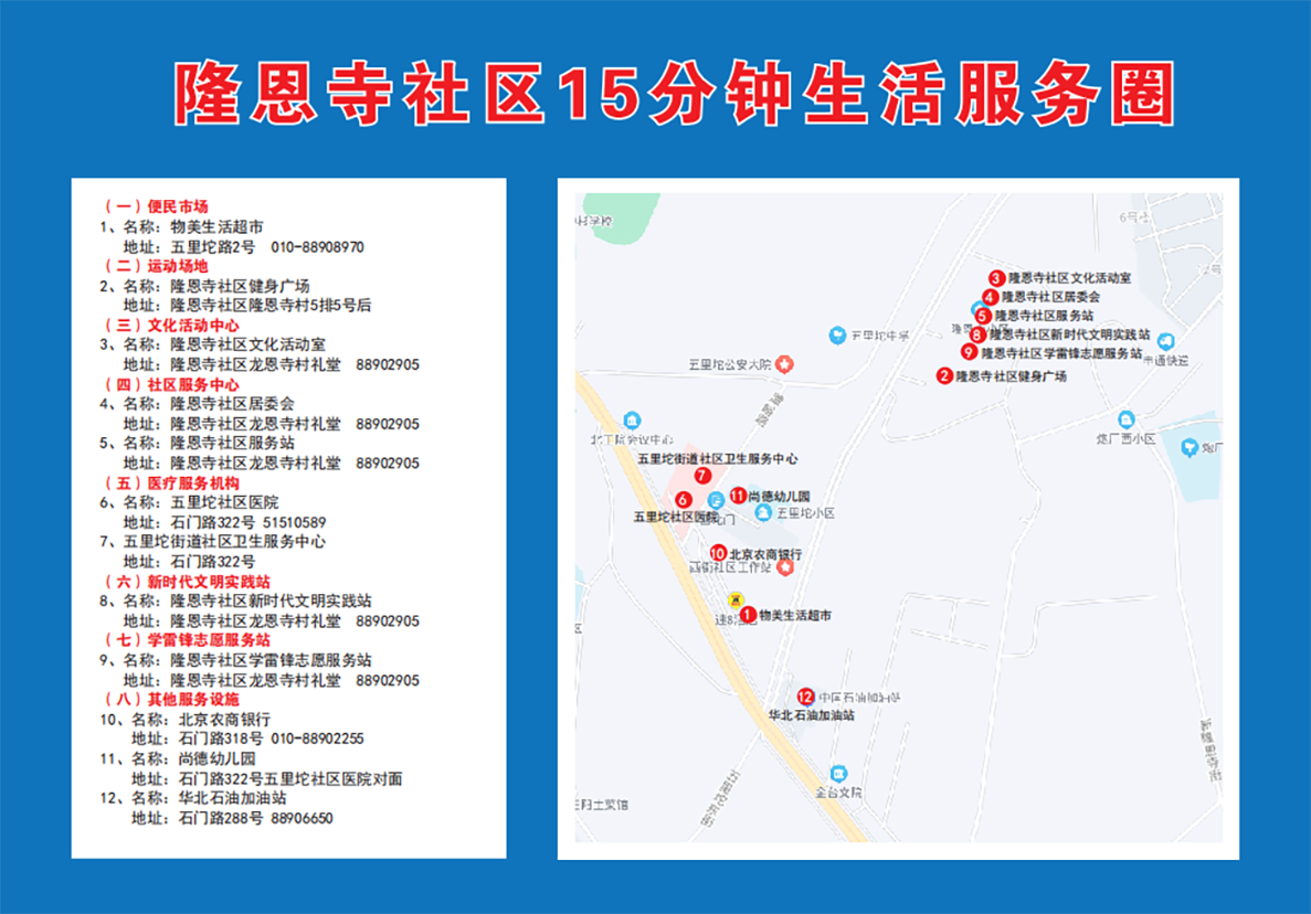 五里坨位于石景山区西北部,与海淀、门头沟接壤,因境内小青山距模式口、麻峪、三家店均为五里路程而得名五里坨。街道成立于1963年,总面积21.5平方千米(山区、浅山区、平原各占1/3),常住人口约6万,其中户籍人口约3万人。驻军团级以上部队17个,驻辖区企事业单位339家,其中级别较高、规模较大的驻军和单位有陆军总部机关、北京工业技术职业学院等。五里坨生态环境优美,人文历史悠久,名胜古迹颇多,有清代遗存6处、明代遗存3处、金代遗存1处。其中以慈善寺最为著名,该寺院集佛教、道教、民俗于一身,因著名将领冯玉祥三到慈善寺修养而远近闻名。