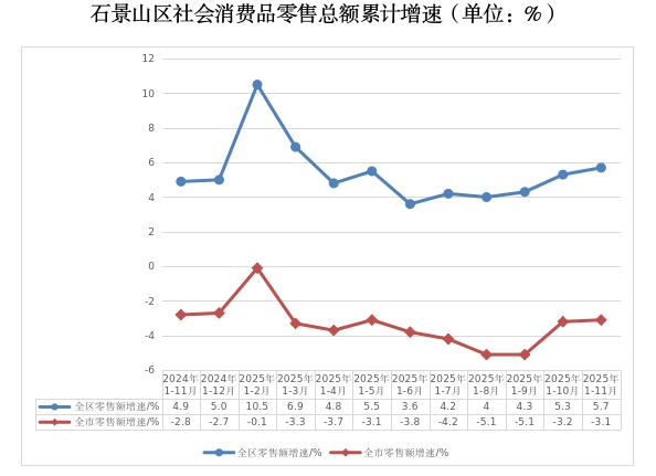 1-11月,全区实现社会消费品零售总额346.5亿元,同比增长5.7%。分消费形态看,累计实现商品零售315.3亿元,同比增长6.1%;餐饮收入31.2亿元,同比增长2.4%。