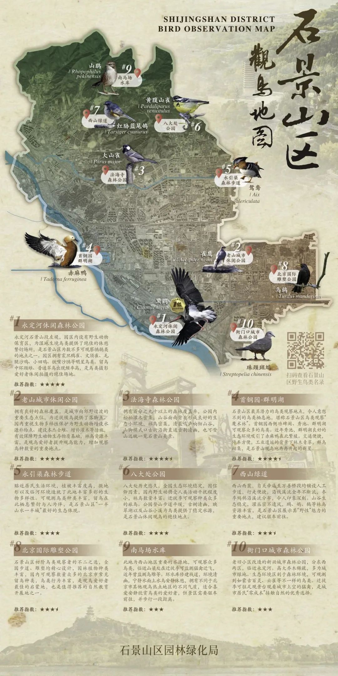 ● 石景山最具潜力的观鸟新地标:具有绝佳观鸟点,园区交通便捷,观鸟之旅无负担。