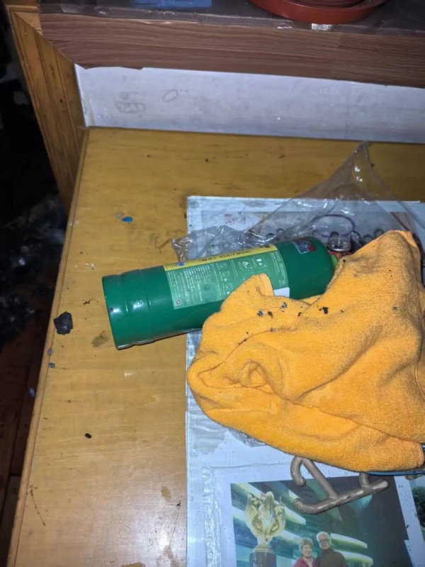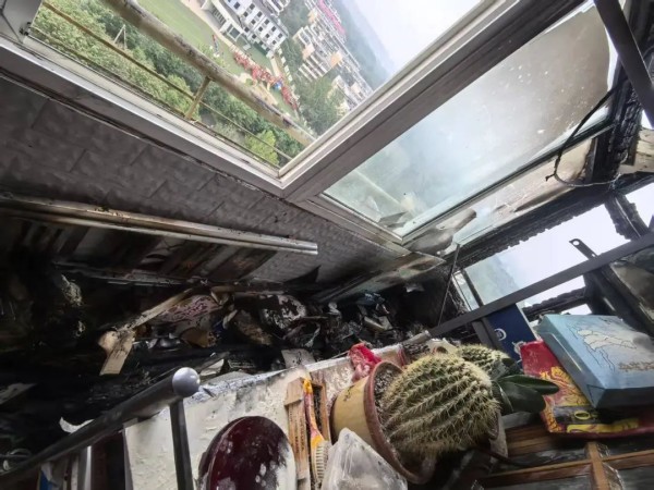 当日17时许,83岁的女户主正在厨房忙碌,突然听到卧室传来噼啪异响。几乎同时,楼上邻居急切的敲门声和呼喊声传来:“您家阳台着火啦!”老人迅速打开房门,与邻居一道,利用家中配备的灭火器和灭火毯,立即对火势进行压制。