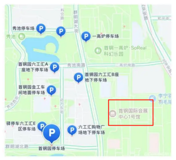 场馆附近有多个停车场可供选择,驾车前来的朋友可在地图软件中搜索“首钢国际会展中心1号馆”附近的停车场自行选择合适的停车位置。