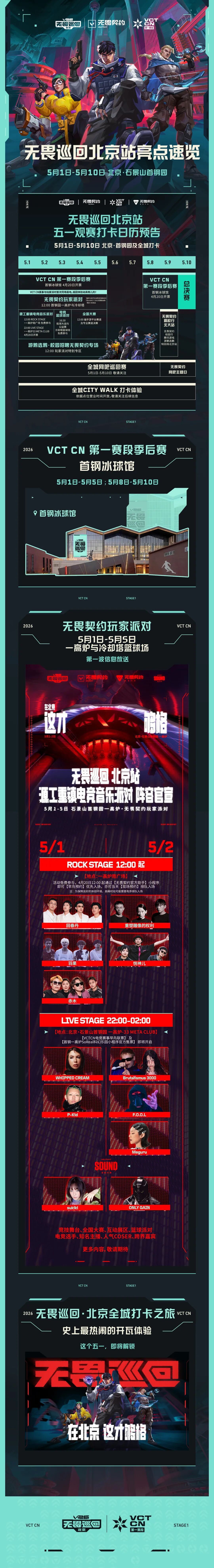 此外值得一提的是,5月1日-5月5日,V26无畏巡回北京站玩家派队,将在北京石景山首钢园一高炉与冷却塔篮球场盛大开场。无畏巡回北京站源工重镇电竞音乐派阵容对也已正式官宣。另有超炫竞技舞台、火热全国大赛,趣味互动展区、潮酷篮球派对等众多精彩活动敬请期待。无畏巡回北京站全程打卡之旅也将同步开启,史上最热闹的开瓦体验,这个五一等你解锁。