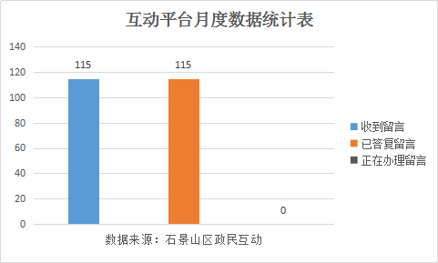 2023年12月统计数据:2023年12月,石景山区政民互动共收到留言115件,已答复留言115件,正在办理留言0件。收到满意度评价115条,满意度50.43%。2023年累计收到留言1960件,累计答复留言1960件,正在办理留言0件。