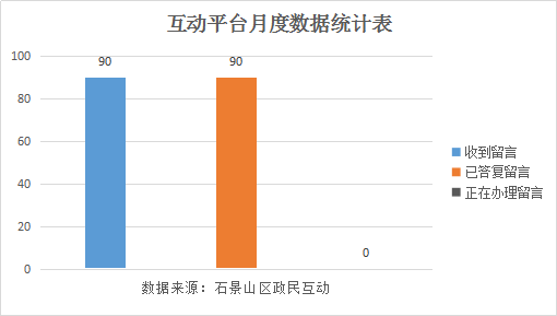2024年1月统计数据:2024年1月,石景山区政民互动共收到留言90件,已答复留言90件,正在办理留言0件。收到满意度评价90条,满意度51.11%。2024年累计收到留言90件,累计答复留言90件,正在办理留言0件。
