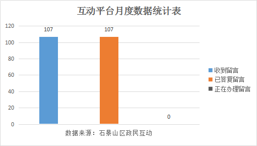 2024年3月统计数据:2024年3月,石景山区政民互动共收到留言107件,已答复留言107件,正在办理留言0件。收到满意度评价107条,满意度63.55%。2024年累计收到留言317件,累计答复留言317件,正在办理留言0件。
