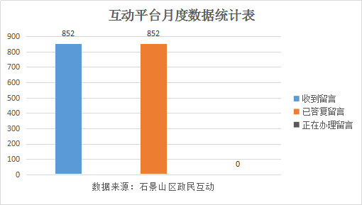 2025年1月统计数据:2025年1月,石景山区政民互动共收到留言852件,已答复留言852件,正在办理留言0件。收到满意度评价852条,满意度5.99%。2025年累计收到留言852件,累计答复留言852件,正在办理留言0件。