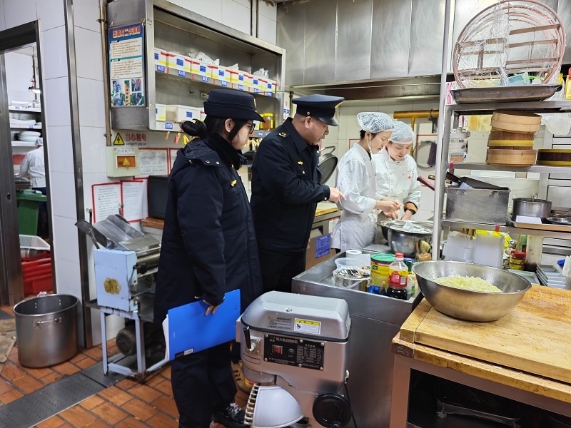 全链监管+数字赋能,严把食品与价格关。本次行动以“全链条检查+智慧化监管”双轮驱动,紧盯年夜饭承办单位食品安全关键环节,执法人员对餐饮企业原料采购查验、加工操作规范、餐具清洗消毒、从业人员健康管理等进行全覆盖检查,督促企业严格落实食品留样制度,压实食品安全主体责任。同时深化“互联网+明厨亮灶”智慧监管应用,通过非现场实时巡查后厨操作状态,实现食品安全风险“早发现、早处置”,让监管更高效、更精准。此外,强化春节期间餐饮价格监管,严查哄抬价格、不明码标价等违法行为,营造公平透明、诚信经营的节日消费环境。