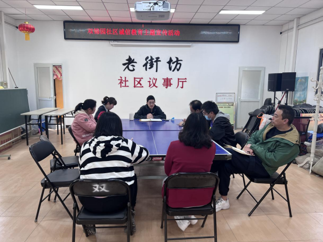 为进一步提高社区居民的信用意识,营造诚实守信的良好社区环境,宣传诚信理念,弘扬诚信文化,3月21日,双锦园社区开展诚信教育主题宣传活动。